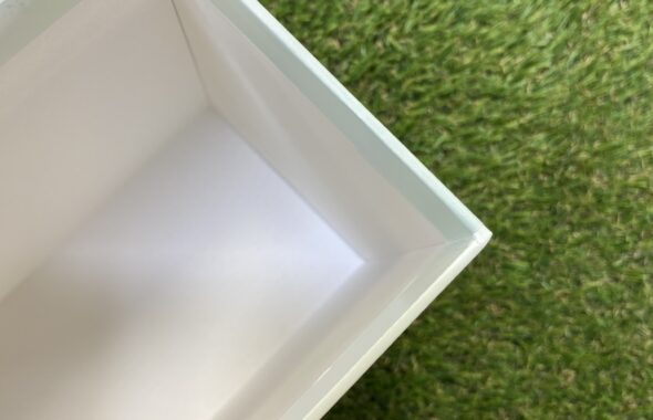 「深折込みの貼箱」は、側面まで生地(芯材になる板紙)が見える事なく非常に綺麗な見た目になるため、箱を含めたお客様の商品自体の価値より高くなるお手伝いができればと考えています。