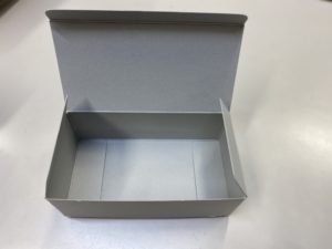 ステッチャーを使用せず、接着剤で製函した箱です。