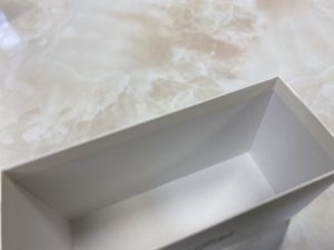 JUN 15 2021 製作事例 深い貼箱 深い貼箱も綺麗に貼っています。最大深さ120mm迄可能 画像は100mmの深さの貼箱を包み貼りで仕上げています。 Tweet Share 投稿者: タチ紙器工業製作事例コメント: 0 深曲げ・深折込み 貼箱 箔押 箔色イメージ